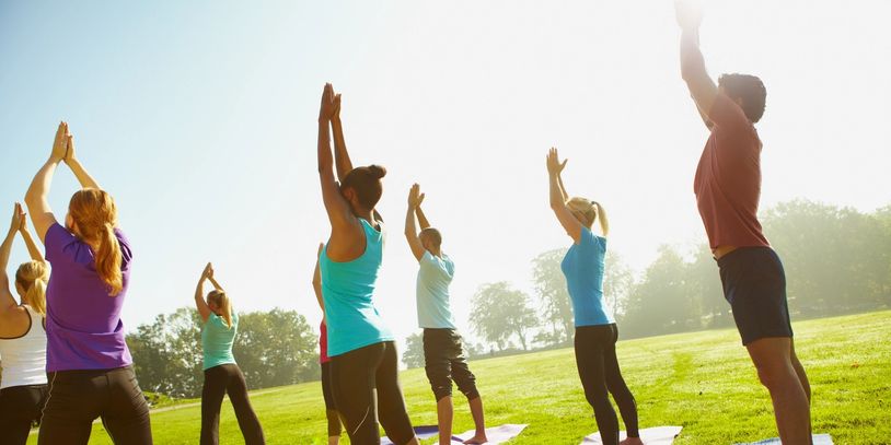 Gather your friends, family, and colleagues for some yoga. This latest trend brings yoga to your backyard, workplace, banquet hall, or local park.